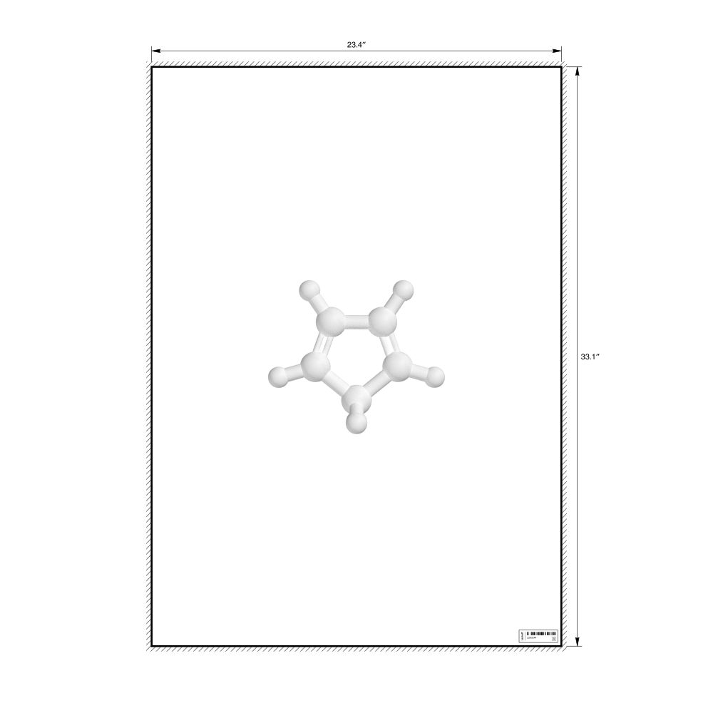A poster featuring the ball-and-stick model of the cyclopentadiene molecule.