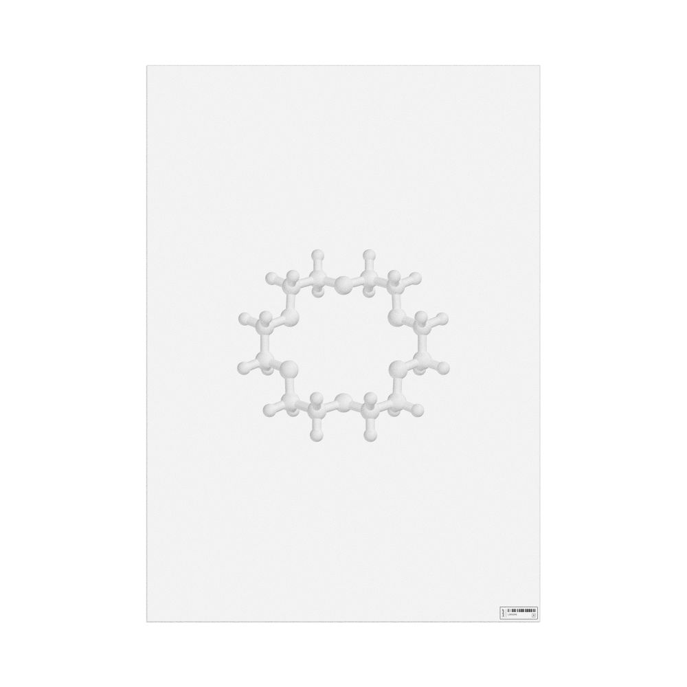 A poster featuring the ball-and-stick model of the 18-crown-6 molecule.