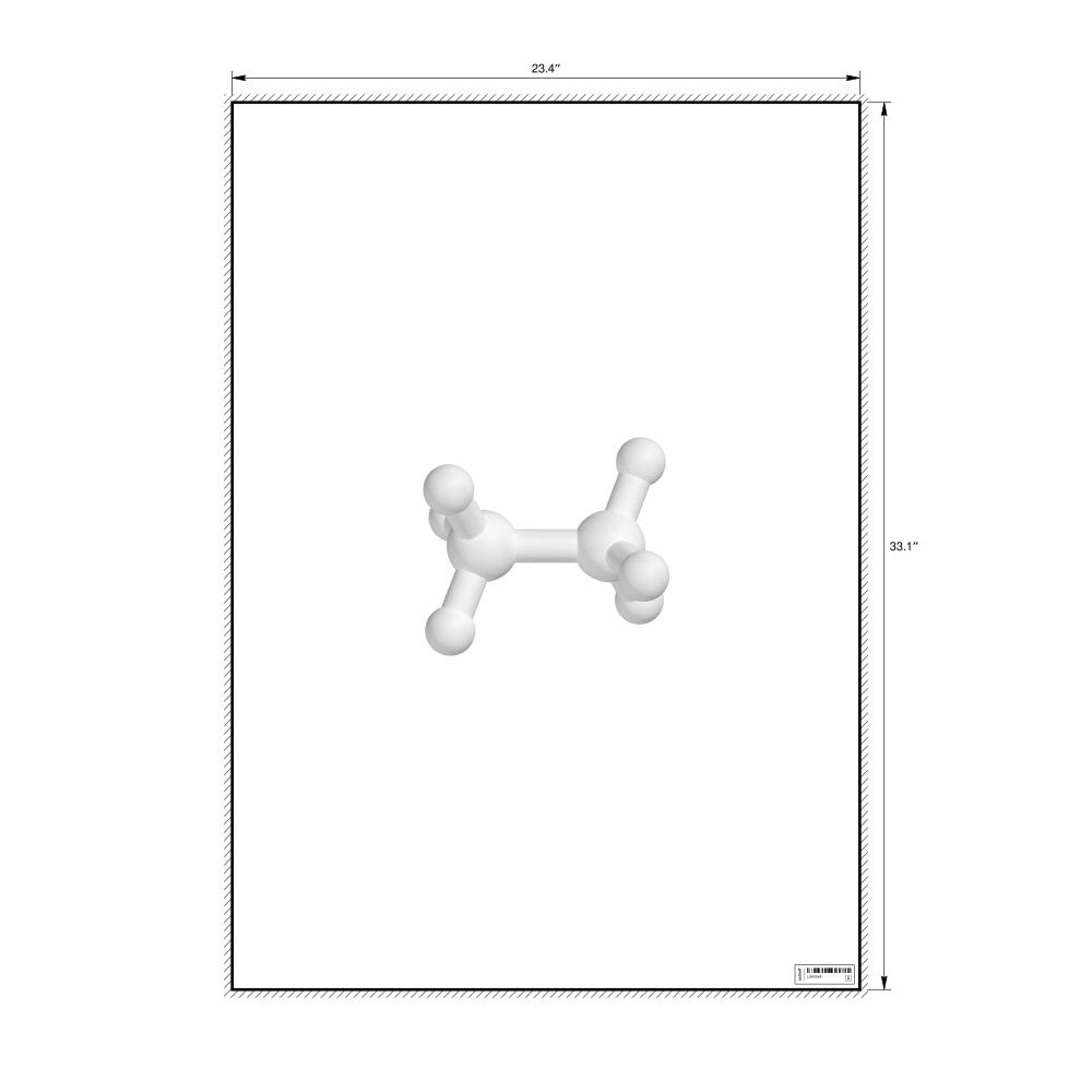 A poster featuring the ball-and-stick model of the ethane molecule.