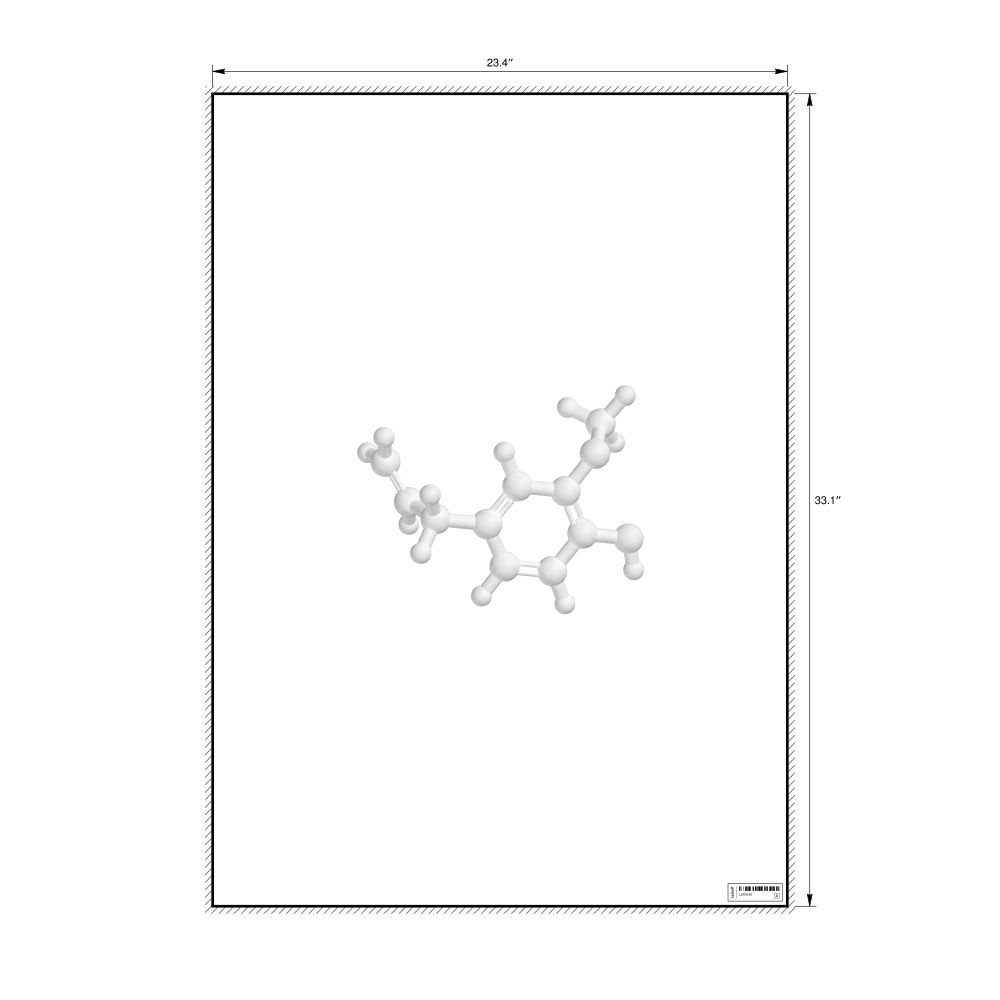 A poster featuring the ball-and-stick model of the eugenol molecule.