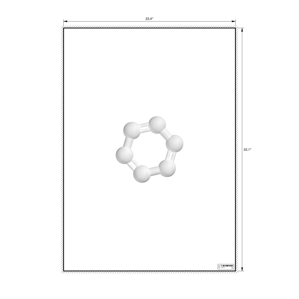 A poster featuring the ball-and-stick model of the hexazine molecule.