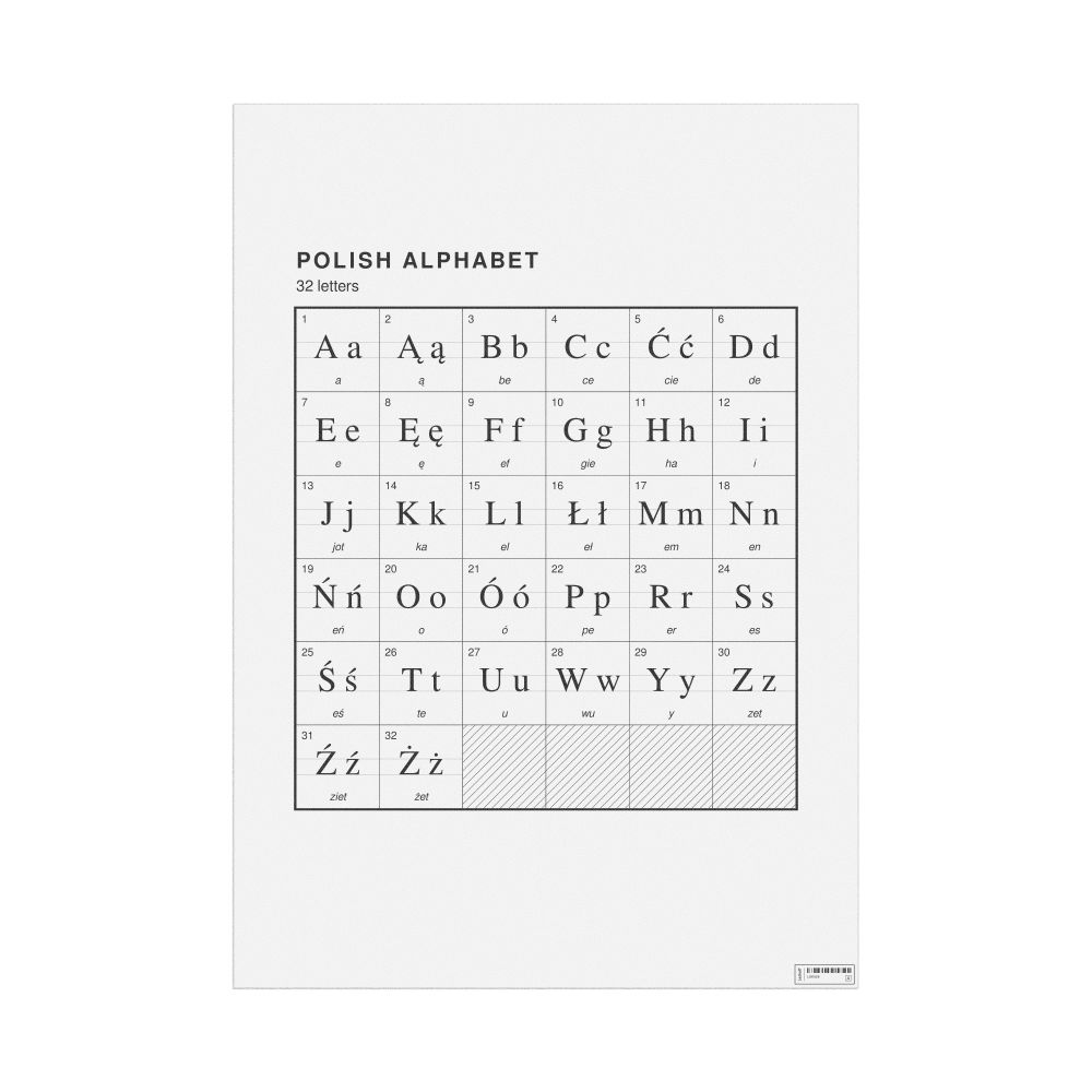 The Polish alphabet chart (the full set of letters) in the 23.4 x 33.1 in (59.4 x 84.1 cm, poster / wall chart) format.