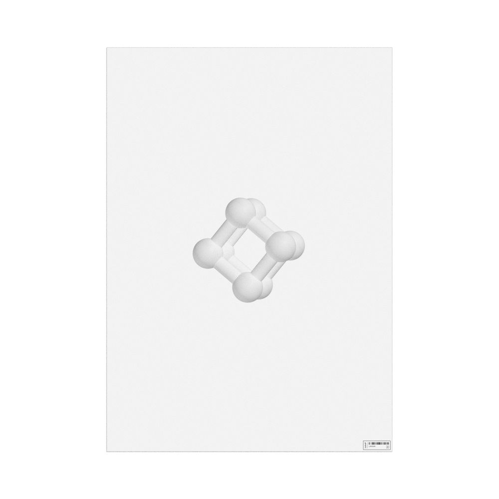 A poster featuring the ball-and-stick model of the octaazacubane molecule.
