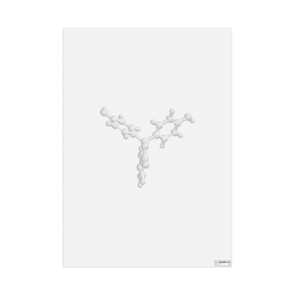 A poster featuring the ball-and-stick model of the phenolphthalein molecule.