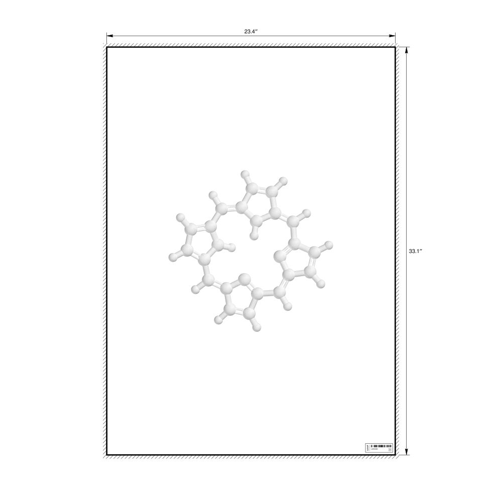 A poster featuring the ball-and-stick model of the porphine molecule.