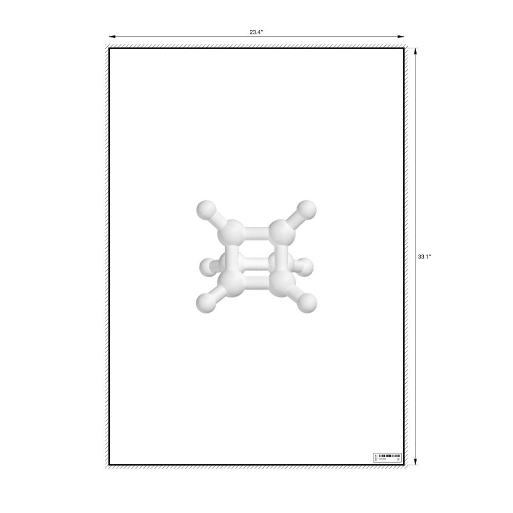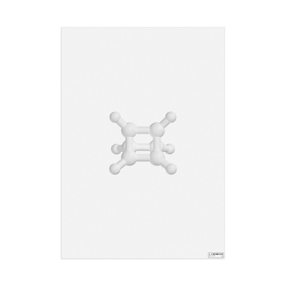 A poster featuring the ball-and-stick model of the prismane molecule.