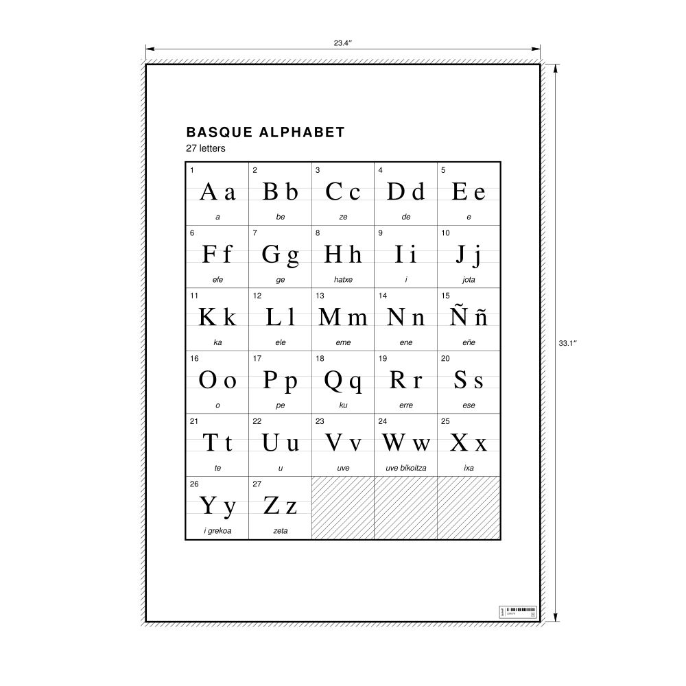 Basque Alphabet Chart23.4 x 33.1 in (59.4 x 84.1 cm, Poster / Wall Chart)