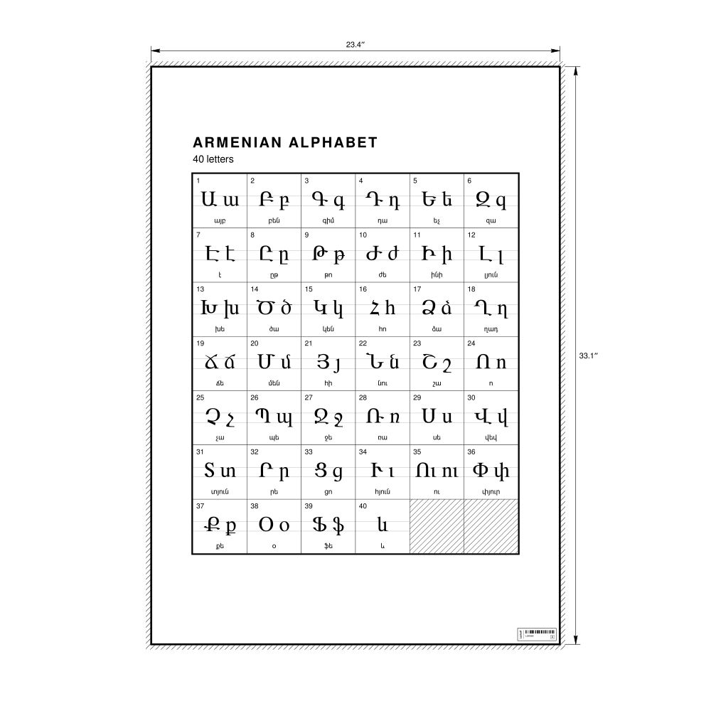 The Armenian alphabet chart (the full set of letters) in the 23.4 x 33.1 in (59.4 x 84.1 cm, poster / wall chart) format.