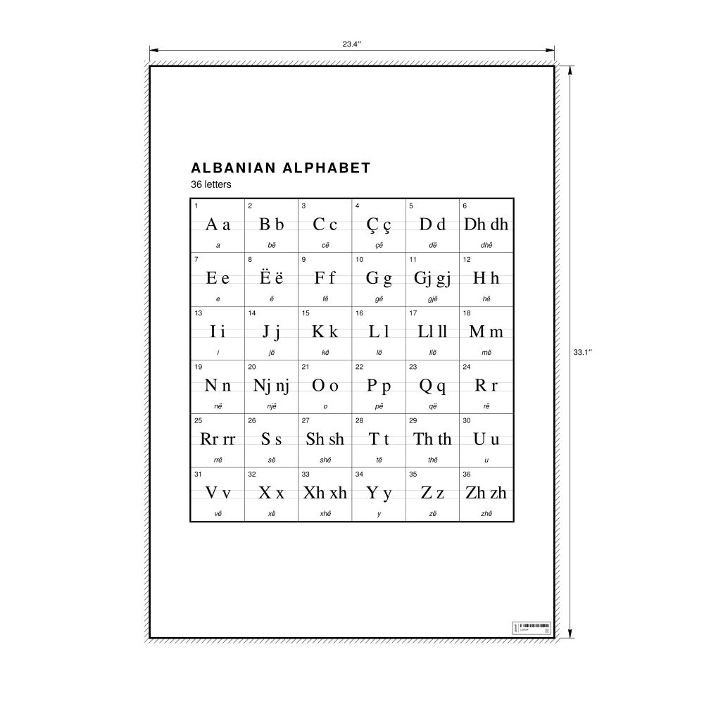 Albanian Alphabet Chart23.4 x 33.1 in (59.4 x 84.1 cm, Poster / Wall Chart)