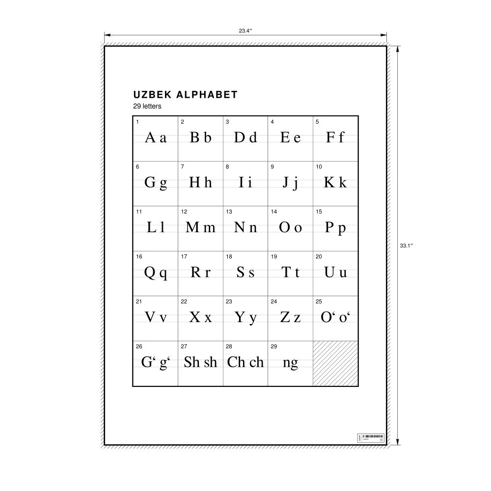 Uzbek Alphabet Chart23.4 x 33.1 in (59.4 x 84.1 cm, Poster / Wall Chart)