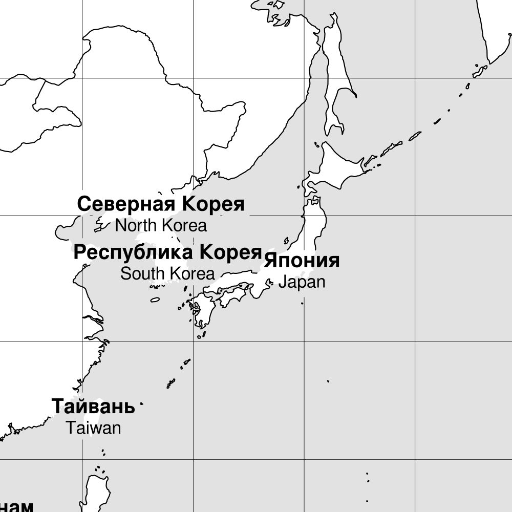 Carte du monde en russe / Weltkarte auf Russisch / Mapa del mundo en ruso / Mapa do mundo em russo / Карта мира на русском / خريطة العالم باللغة الروسية / 俄语世界地图 / ロシア語の世界地図