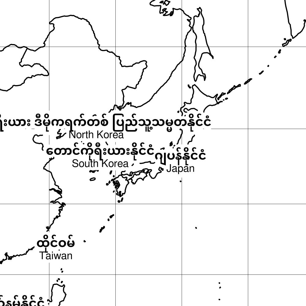Carte du monde en birman / Weltkarte auf Burmesisch / Mapa del mundo en birmano / Mapa do mundo em birmanês / Карта мира на бирманском / خريطة العالم باللغة البورمية / 缅甸世界地图 / ビルマ語の世界地図
