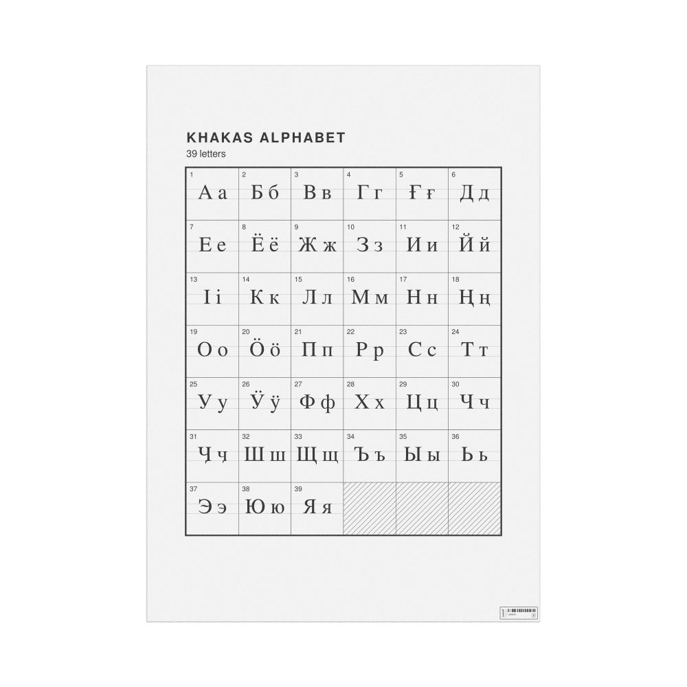 The Khakas alphabet chart (the full set of letters) in the 23.4 x 33.1 in (59.4 x 84.1 cm, poster / wall chart) format.