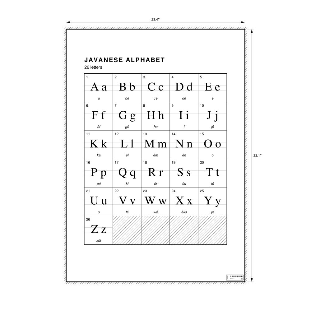Javanese Alphabet Chart23.4 x 33.1 in (59.4 x 84.1 cm, Poster / Wall Chart)