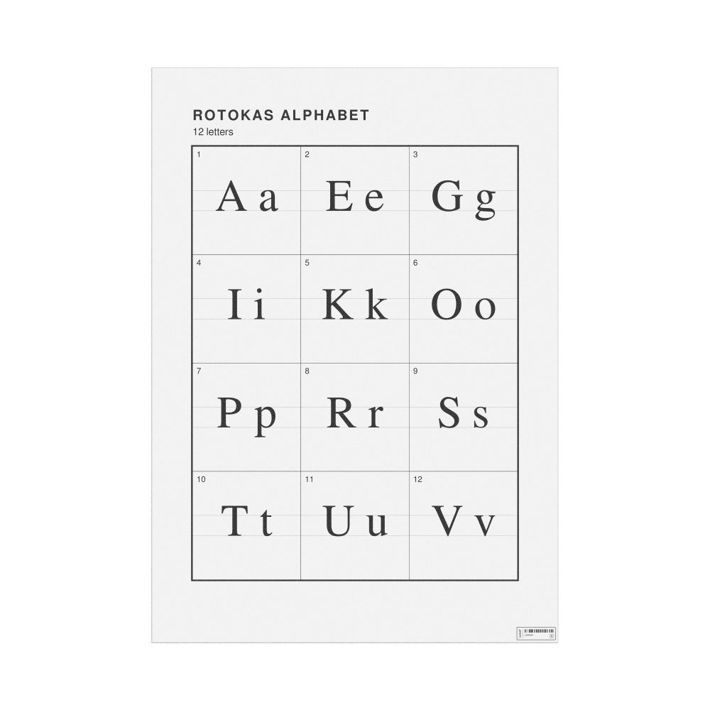 The Rotokas alphabet chart (the full set of letters) in the 23.4 x 33.1 in (59.4 x 84.1 cm, poster / wall chart) format.