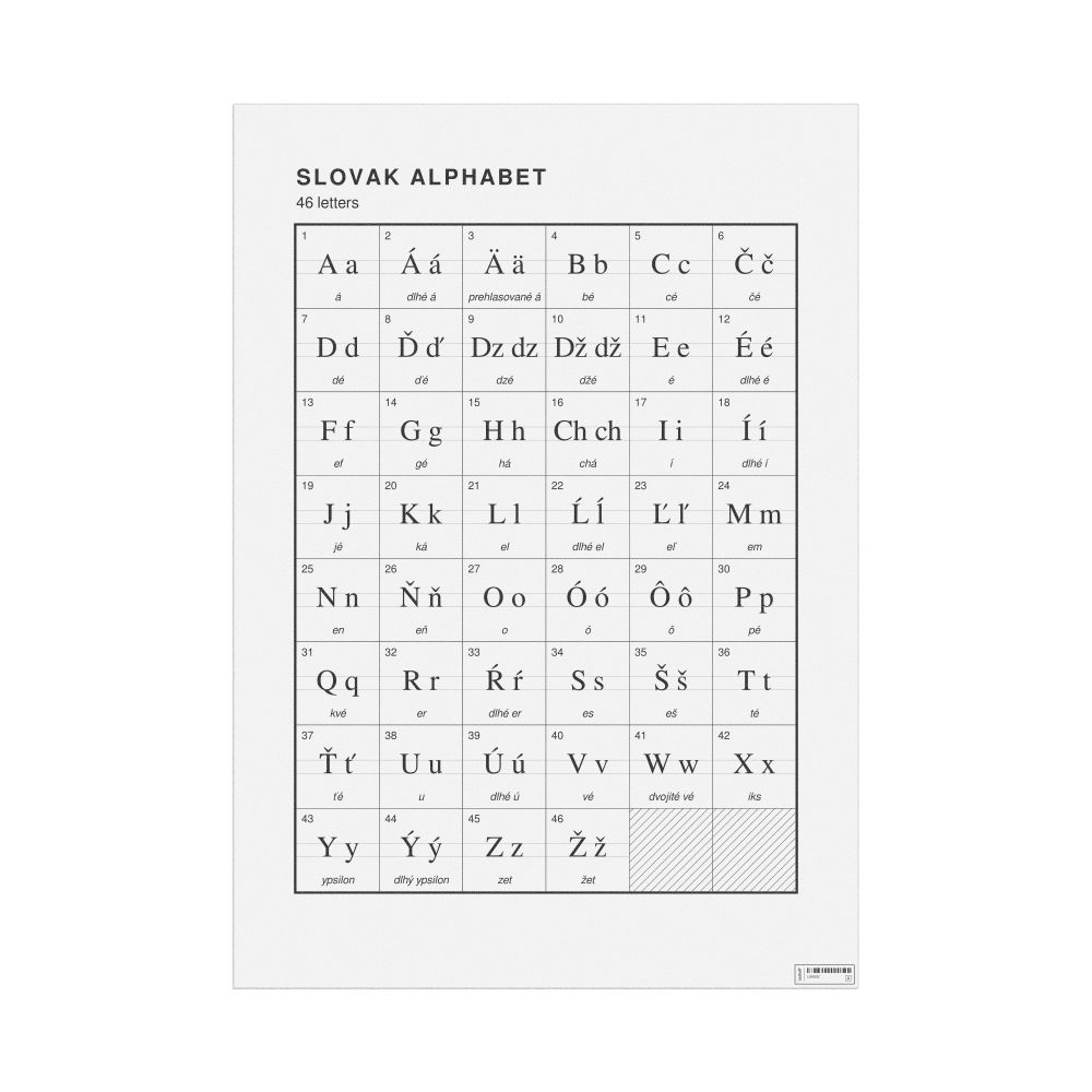 The Slovak alphabet chart (the full set of letters) in the 23.4 x 33.1 in (59.4 x 84.1 cm, poster / wall chart) format.