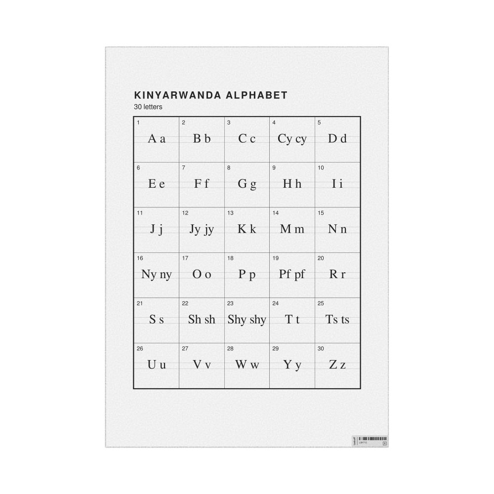 - Linguists and philologists - For both professionals and hobbyists, this alphabet print serves as a piece of linguistic art that presents the character inventory of Kinyarwanda as a linguistic (graphemic) dataset. Add this to your Kinyarwanda collection to complement your studies and research. A mixture of Kinyarwanda letters and English metatext makes it a unique, visually intriguing illustration of linguistic diversity and interaction.