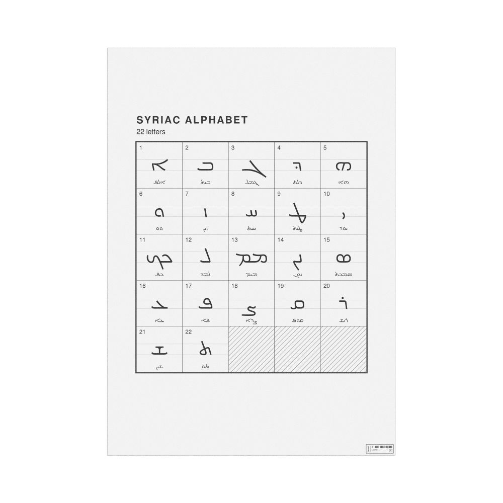 The Syriac alphabet chart (the full set of letters) in the 23.4 x 33.1 in (59.4 x 84.1 cm, poster / wall chart) format.