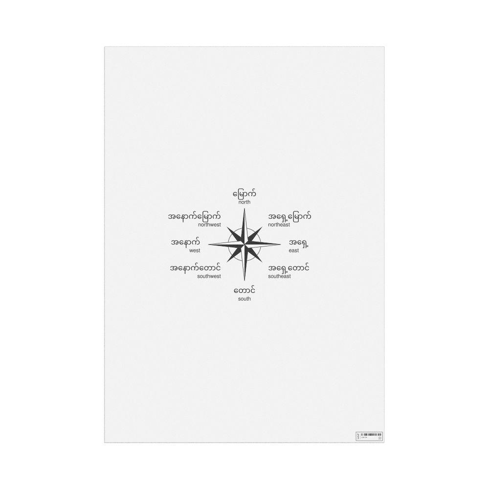 Cardinal Directions Poster, Burmese-Labeled