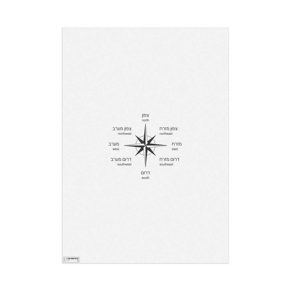 Cardinal Directions Poster, Hebrew-Labeled