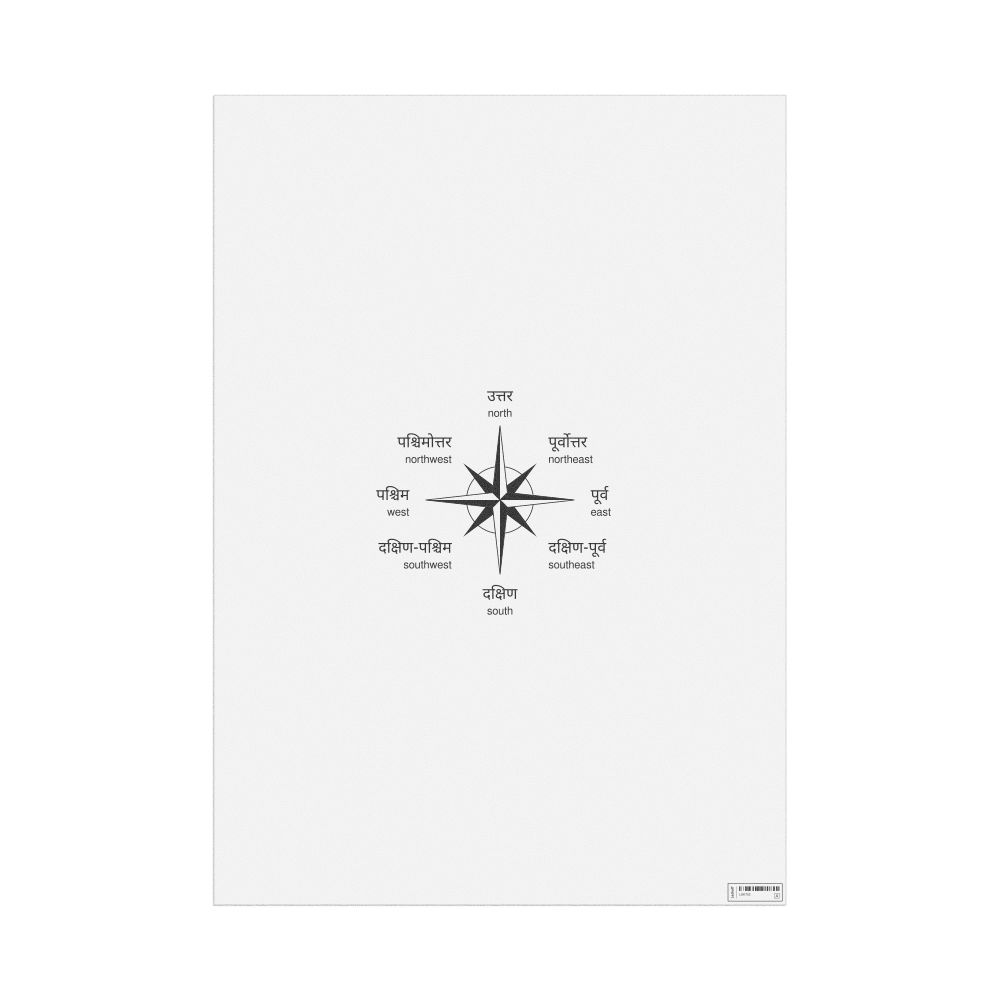 Cardinal Directions Poster, Hindi-Labeled