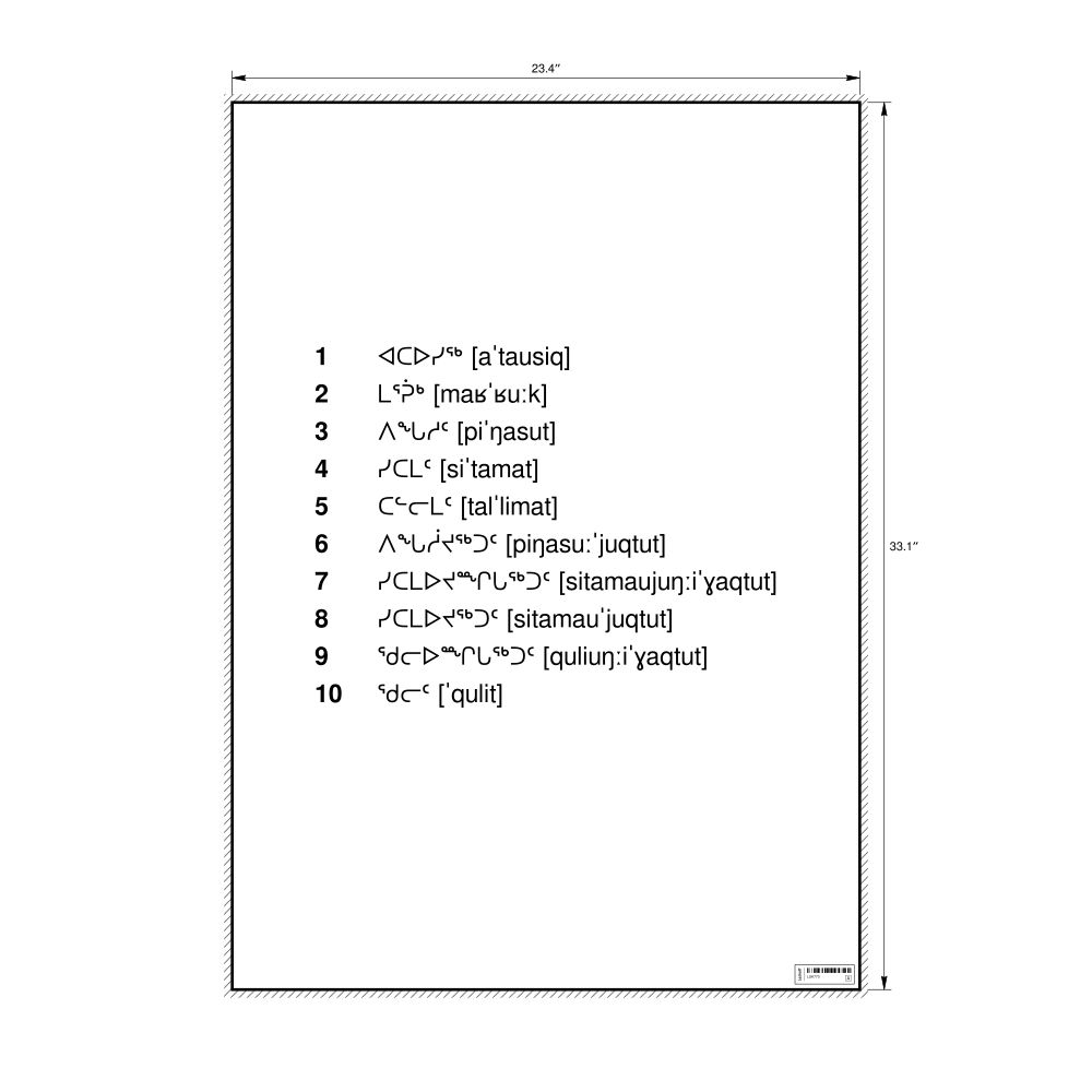 Nombres de 1 à 10 en inuktitut / Zahlen 1–10 auf Inuktitut / Números del 1 al 10 en inuktitut / Números de 1 a 10 em inuktitut / Числа от 1 до 10 на инуктитуте / الأرقام من 1 إلى 10 باللغة الإنكتيتوت / 伊努克提图特语1到10的数字 / イヌクティトゥット語で1から10までの数字