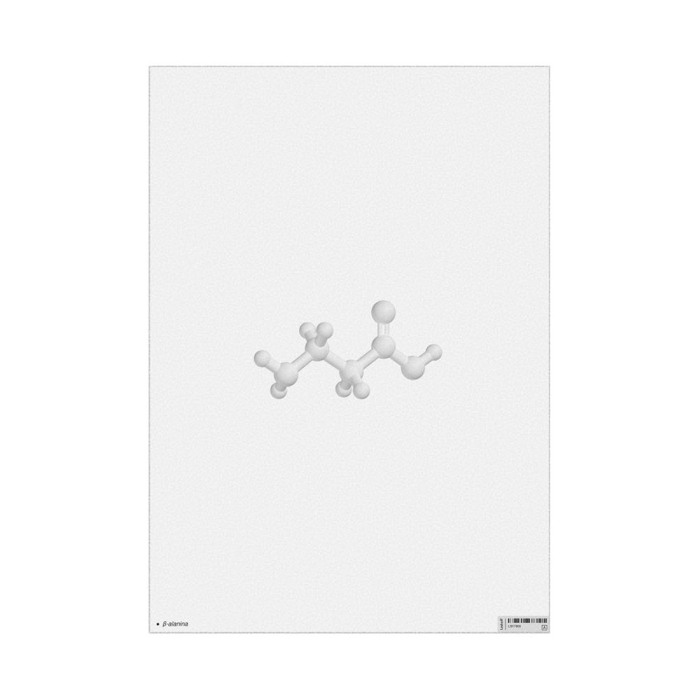 A poster featuring the ball-and-stick model of the β-alanine molecule.