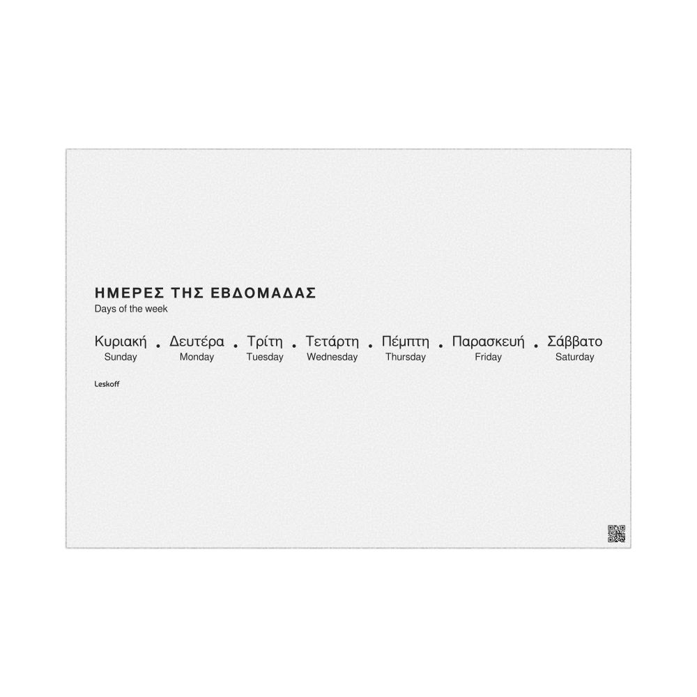 Days of the Week Poster, Greek-Labeled