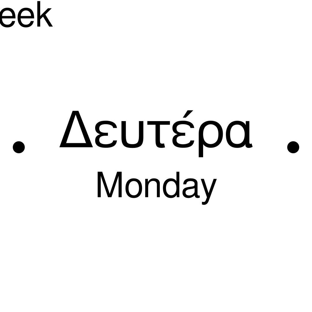 Jours de la semaine en grec / Wochentage auf Griechisch / Días de la semana en griego / Dias da semana em grego / Дни недели на греческом / أيام الأسبوع باللغة اليونانية / 希腊语中的星期几 / ギリシャ語での曜日