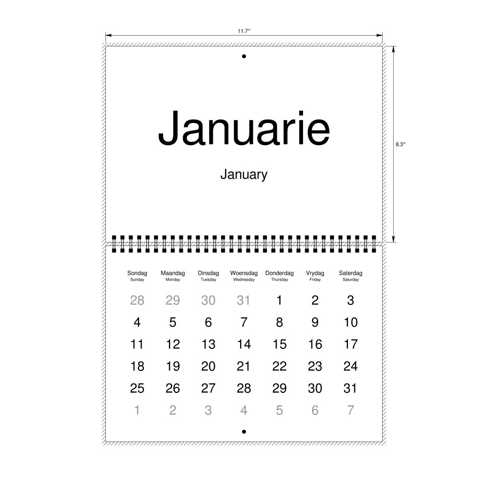 2026 Wall CalendarAfrikaans/English-Labeled, Sunday-Start Layout, Wire-Bound, 11.7 x 8.3 in (29.7 x 21.0 cm)