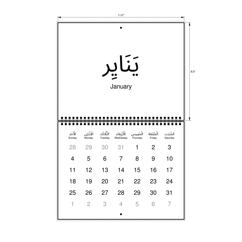 2026 Wall CalendarArabic/English-Labeled, Sunday-Start Layout, Wire-Bound, 11 x 8.5 in (27.9 x 21.6 cm)
