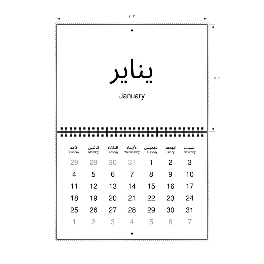 2026 Wall CalendarArabic/English-Labeled, Sunday-Start Layout, Wire-Bound, 11.7 x 8.3 in (29.7 x 21.0 cm)