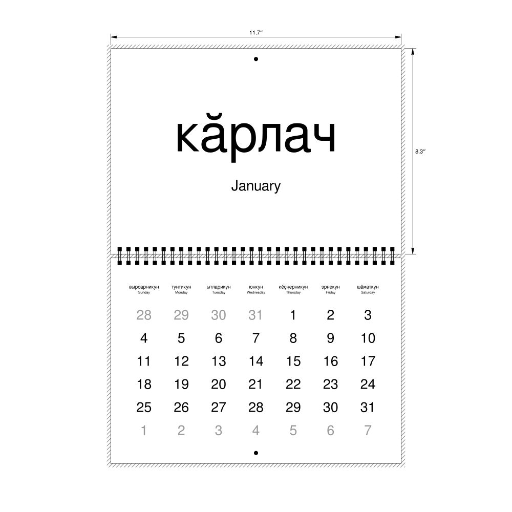 2026 Wall Calendar, Chuvash-Labeled, Monday-Start Layout, Wire-Bound, 11.7 x 8.3 in (29.7 x 21.0 cm)