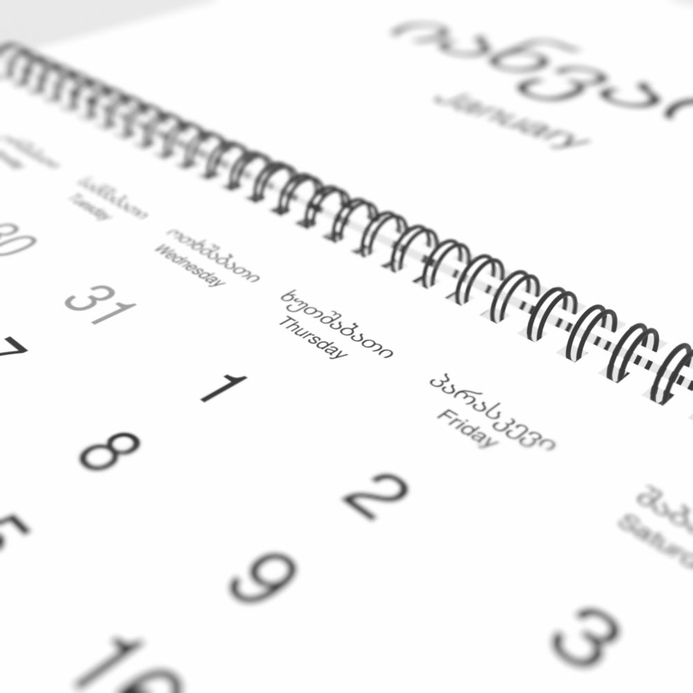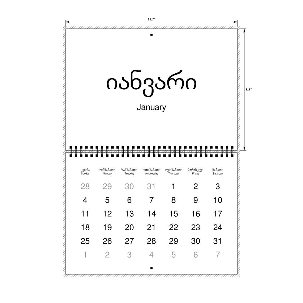 2026 Wall CalendarGeorgian/English-Labeled, Sunday-Start Layout, Wire-Bound, 11.7 x 8.3 in (29.7 x 21.0 cm)