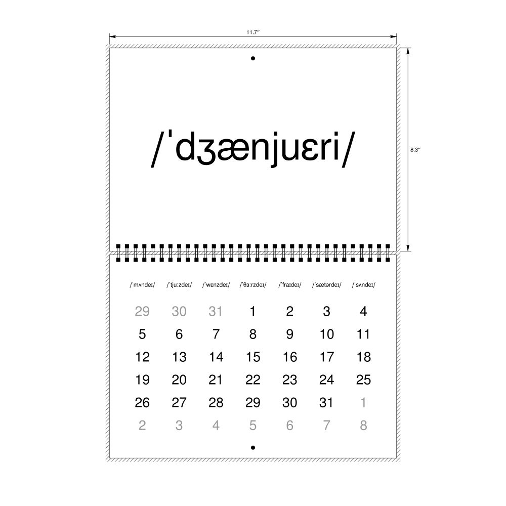 2026 Phonetic Wall CalendarIPA-Labeled (English), Monday-Start Layout, Wire-Bound, 11.7 x 8.3 in (29.7 x 21.0 cm)