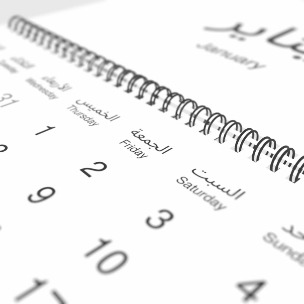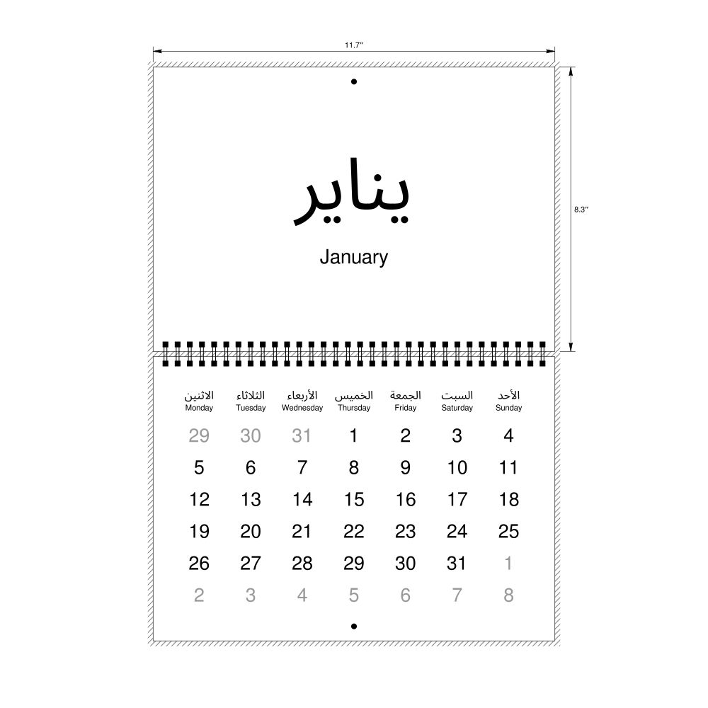 2026 Wall CalendarArabic/English-Labeled, Monday-Start Layout, Wire-Bound, 11.7 x 8.3 in (29.7 x 21.0 cm)