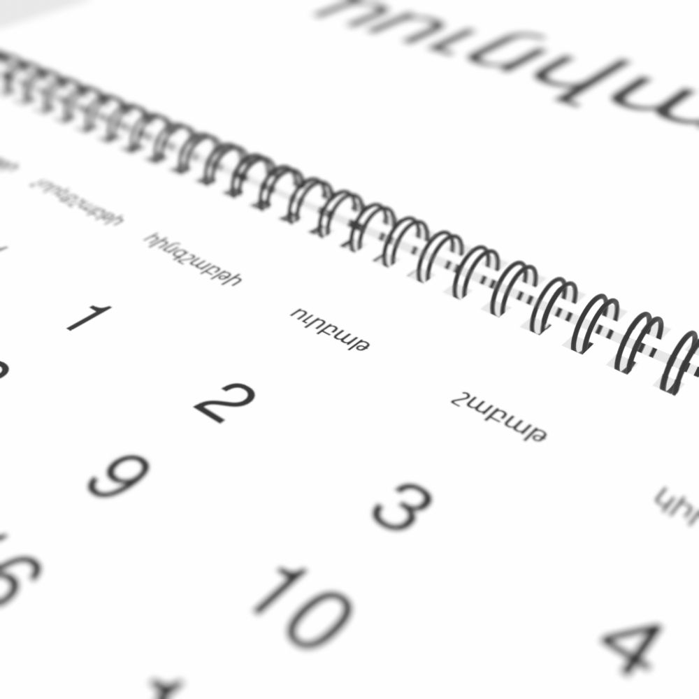 - Linguistics enthusiasts and polyglots - For "language geeks" interested in comparative linguistics or the mechanics of different languages and who value the aesthetic differences in scripts, orthography, and typography of different languages, the Armenian calendar serves as an object of intellectual interest. You can collect calendars for various languages to compare their linguistic roots (e.g., comparing Romance languages vs. Slavic languages). Leskoff's calendars are characterized by specific typographic choices that highlight the orthography and script unique to the target language. Think correct usage of diacritics, characters, and directional writing (left-to-right vs. right-to-left). The minimalist design focuses on legibility and aesthetic appeal of the script itself.