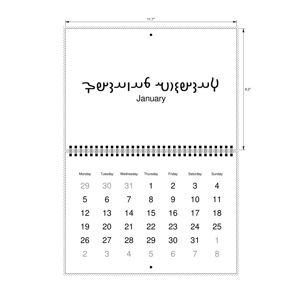 2026 Wall CalendarAvestan/English-Labeled, Monday-Start Layout, Wire-Bound, 11.7 x 8.3 in (29.7 x 21.0 cm)