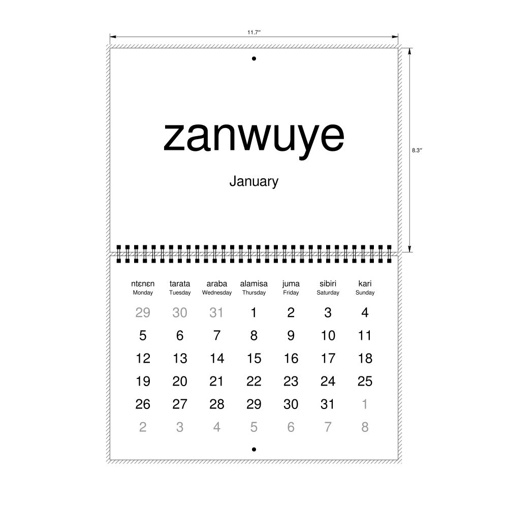 2027 Wall Calendar, Bambara/English-Labeled, Sunday-Start Layout, Wire-Bound, 11.7 x 8.3 in (29.7 x 21.0 cm)