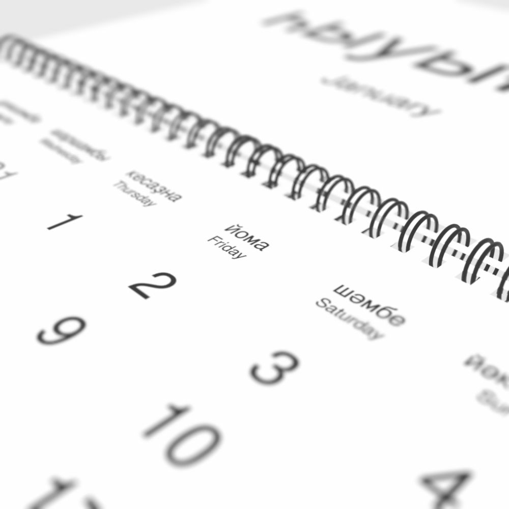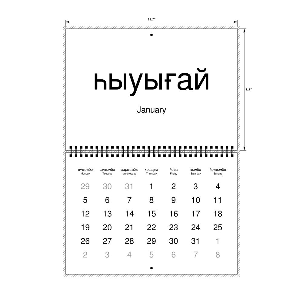 2026 Wall CalendarBashkir/English-Labeled, Monday-Start Layout, Wire-Bound, 11.7 x 8.3 in (29.7 x 21.0 cm)