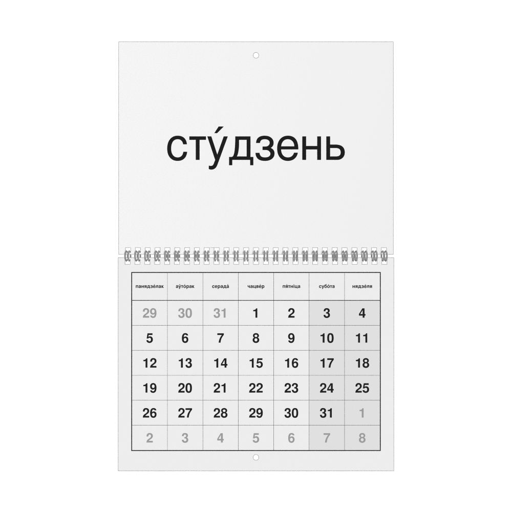 - Linguistics enthusiasts and polyglots - For "language geeks" interested in comparative linguistics or the mechanics of different languages and who value the aesthetic differences in scripts, orthography, and typography of different languages, the Belarusian calendar serves as an object of intellectual interest. You can collect calendars for various languages to compare their linguistic roots (e.g., comparing Romance languages vs. Slavic languages). Leskoff's calendars are characterized by specific typographic choices that highlight the orthography and script unique to the target language. Think correct usage of diacritics, characters, and directional writing (left-to-right vs. right-to-left). The minimalist design focuses on legibility and aesthetic appeal of the script itself.