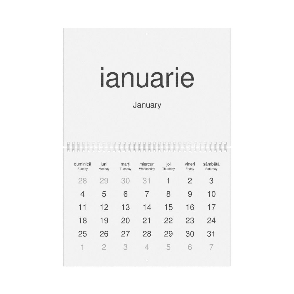 2026 Wall Calendar, Romanian-Labeled, Sunday-Start Layout, Wire-Bound, 11.7 x 8.3 in (29.7 x 21.0 cm)
