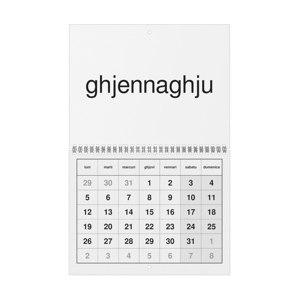 - Linguistics enthusiasts and polyglots - For "language geeks" interested in comparative linguistics or the mechanics of different languages and who value the aesthetic differences in scripts, orthography, and typography of different languages, the Corsican calendar serves as an object of intellectual interest. You can collect calendars for various languages to compare their linguistic roots (e.g., comparing Romance languages vs. Slavic languages). Leskoff's calendars are characterized by specific typographic choices that highlight the orthography and script unique to the target language. Think correct usage of diacritics, characters, and directional writing (left-to-right vs. right-to-left). The minimalist design focuses on legibility and aesthetic appeal of the script itself.