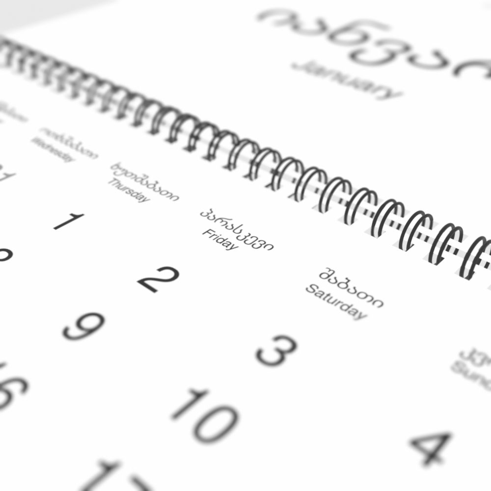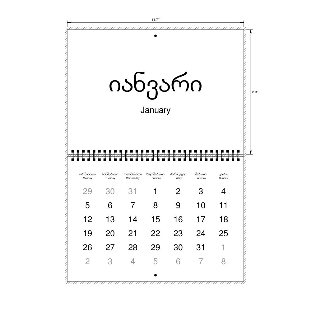 2026 Wall CalendarGeorgian/English-Labeled, Monday-Start Layout, Wire-Bound, 11.7 x 8.3 in (29.7 x 21.0 cm)