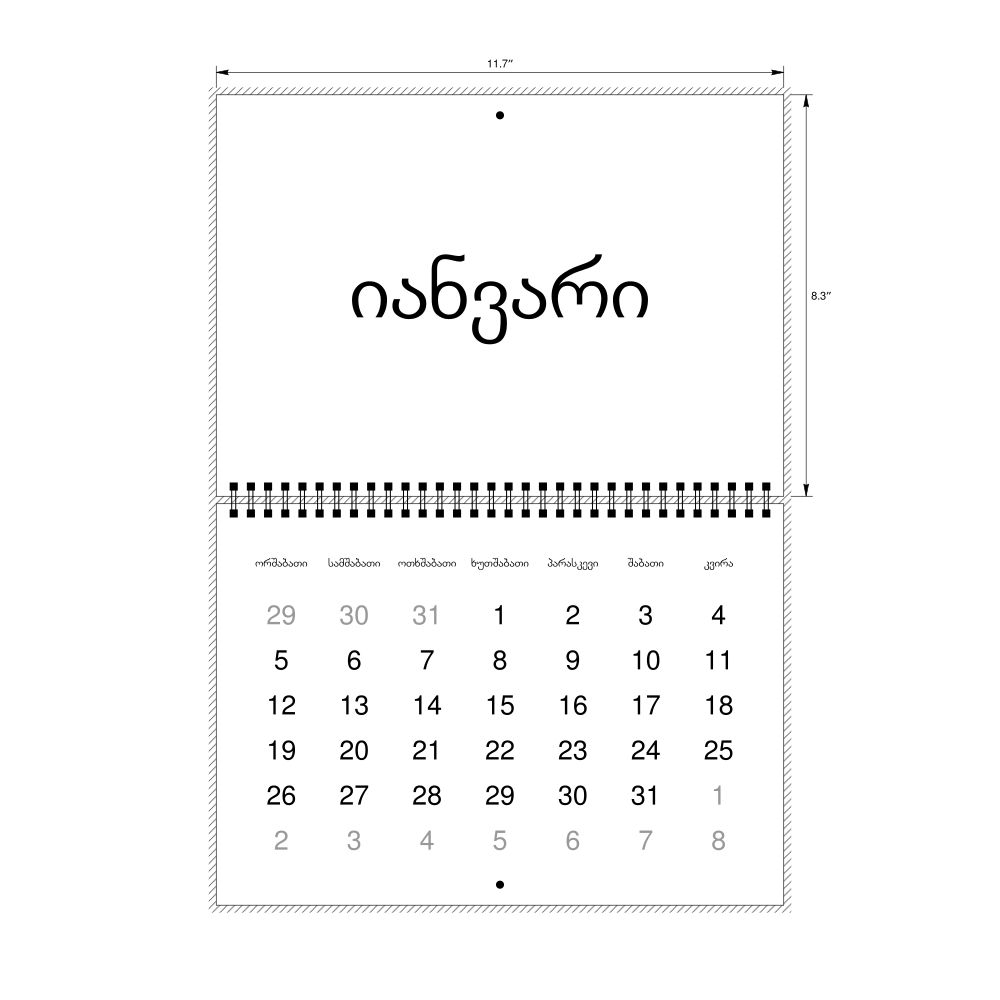 - Georgian heritage speakers and cultural connectors - For individuals seeking to maintain a connection to their history, ancestral roots, or the culture associated with the Georgian language, the calendar serves as a daily cultural marker. Use it in your home, office, library, or museum as a link to linguistic and cultural identity that integrates Georgian into your everyday life. Familiar language script and naming conventions may also provide a sense of home in a foreign environment.