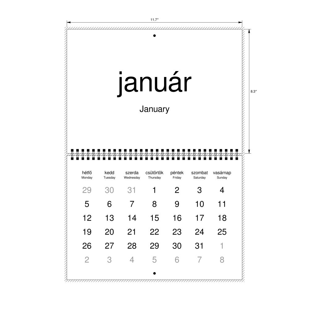 2027 Wall Calendar, Hungarian-Labeled, Sunday-Start Layout, Wire-Bound, 11.7 x 8.3 in (29.7 x 21.0 cm)