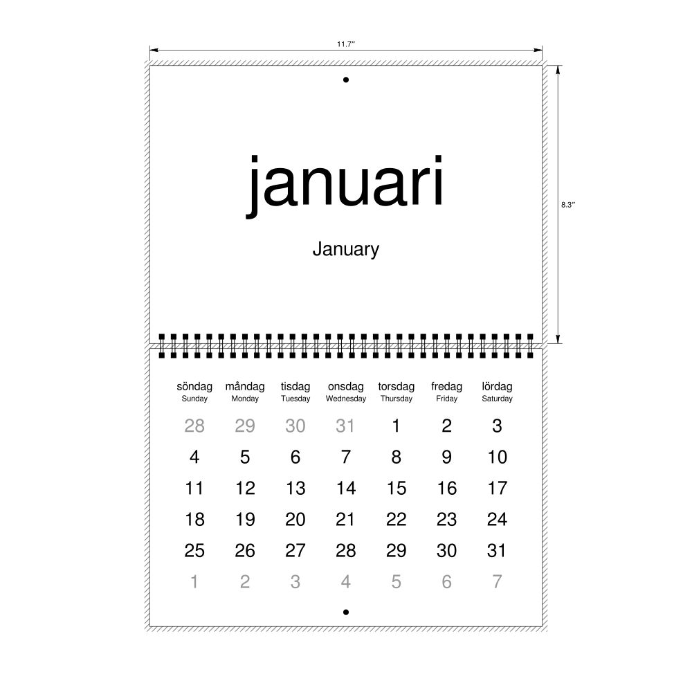 2026 Wall CalendarSwedish/English-Labeled, Sunday-Start Layout, Wire-Bound, 11.7 x 8.3 in (29.7 x 21.0 cm)