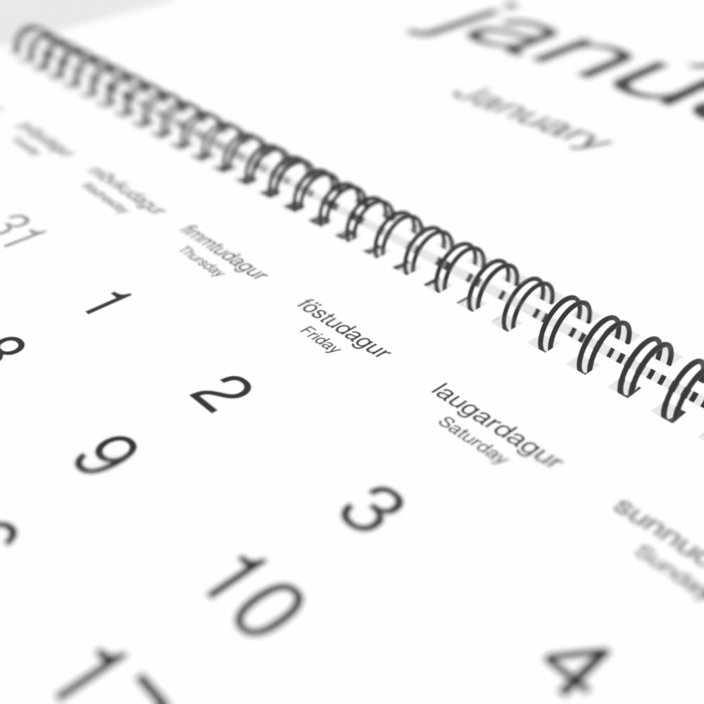 2026 Wall Calendar, Icelandic-Labeled, Sunday-Start Layout, Wire-Bound, 11.7 x 8.3 in (29.7 x 21.0 cm)