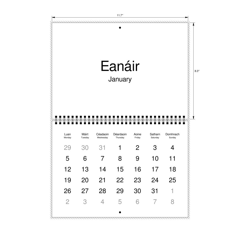 2026 Wall CalendarIrish/English-Labeled, Monday-Start Layout, Wire-Bound, 11.7 x 8.3 in (29.7 x 21.0 cm)