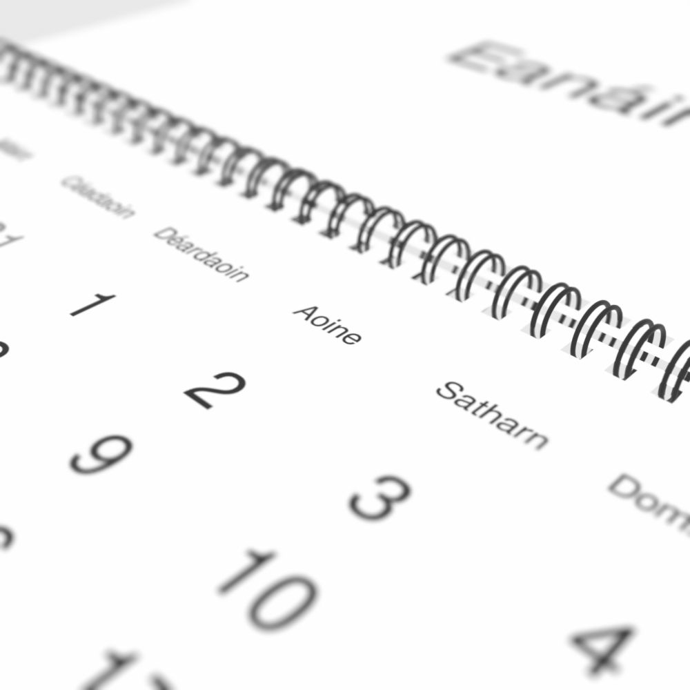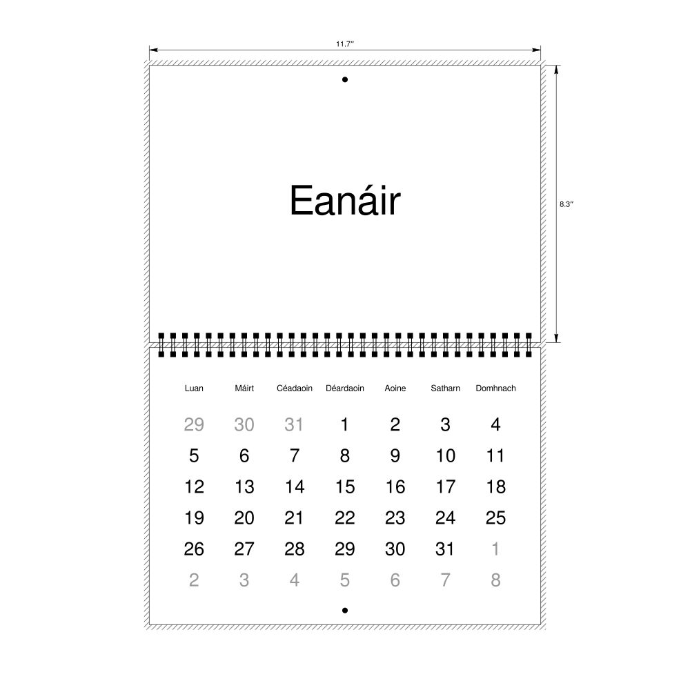 - Irish heritage speakers and cultural connectors - For individuals seeking to maintain a connection to their history, ancestral roots, or the culture associated with the Irish language, the calendar serves as a daily cultural marker. Use it in your home, office, library, or museum as a link to linguistic and cultural identity that integrates Irish into your everyday life. Familiar language script and naming conventions may also provide a sense of home in a foreign environment.